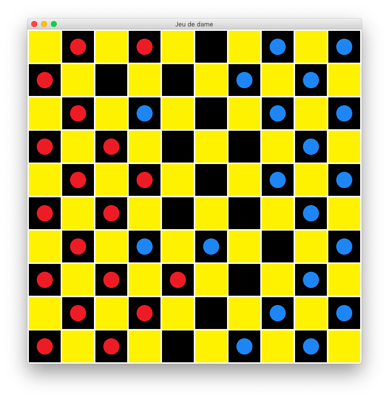 Another game that interested me a lot in terms of rules was the Checker game. I coded my version of the game for a player-vs-player configuration, defining all the possible movements and the necessary conditions to allow those moves. I ended with a totally fonctionnal Checker game, without caring a lot about the graphisms and the design of the game.